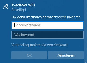 Om op het Kwadraad WiFi netwerk in te loggen klik je op het icoontje