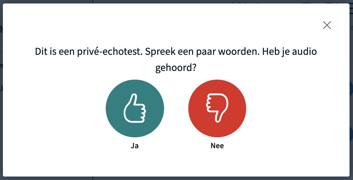 Stap 4: zeg iets en bevestig dat je jezelf kunt horen door op het groene duimpje te klikken.